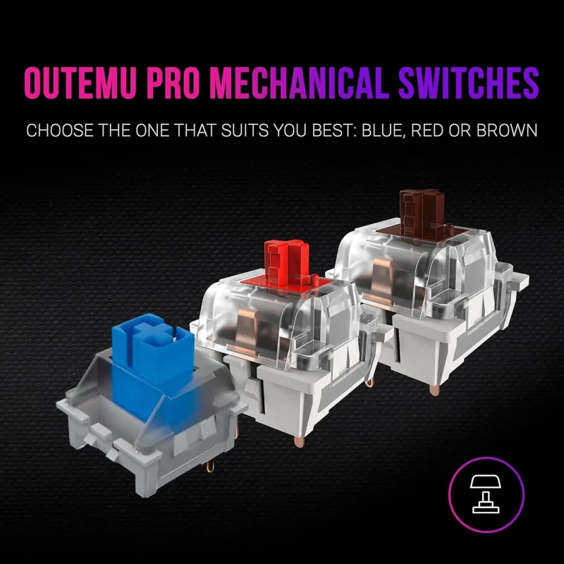 SWITCHES MECÁNICOS OUTEMU PRO: Los switches mecánicos OUTEMU PRO garantizan una total precisión y máxima durabilidad. Además, puedes elegir entre tres tipos diferentes de switch: Rojo, Azul o Marrón. Personaliza tu experiencia al máximo y consigue el teclado perfecto para ti.