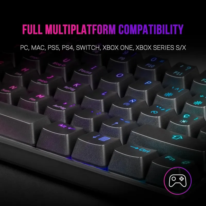 LO TIENE TODO: Un diseño compacto, una iluminación espectacular y un rendimiento excepcional. Podrás disfrutar de un teclado mecánico que ocupa poco espacio, que se adapta a tu estilo y que te ofrece una respuesta rápida y precisa en tus juegos. ¿A qué esperas para probarlo?