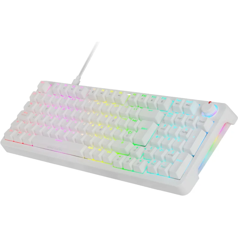 TECLADO MECÁNICO MKPRO: El MKPRO es el teclado mecánico definitivo para quienes buscan rendimiento profesional, personalización avanzada y máxima comodidad. Con un formato completo, incorpora una rueda de control multifunción que permite ajustar el volumen, gestionar funciones multimedia y personalizar la experiencia con facilidad. Su diseño combina teclas mecánicas hot-swappable, iluminación RGB y la tecnología QuietCore, asegurando una experiencia de escritura y gaming fluida y silenciosa.