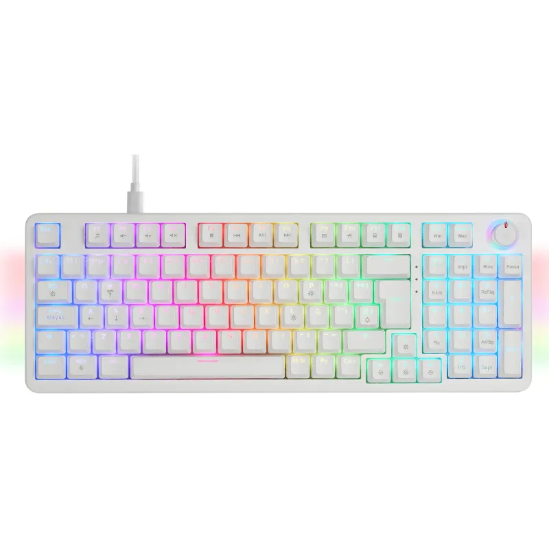 RUEDA DE CONTROL MULTIMEDIA: Equipada con una rueda de control multimedia, el MKPRO permite ajustar el volumen y gestionar la reproducción multimedia con total facilidad. Un sistema intuitivo y preciso que agiliza el control y optimiza tu experiencia tanto en gaming como en trabajo.