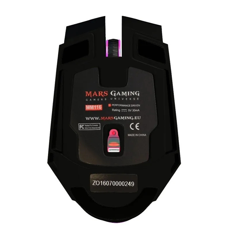 ILUMINACIÓN ESPECTACULAR: El diseño Mars Gaming del ratón MM116 ofrece un espectacular sistema de iluminación LED en siete colores con una transición de colores sin pausa, que dan un estilo gaming alucinante a este ratón.
