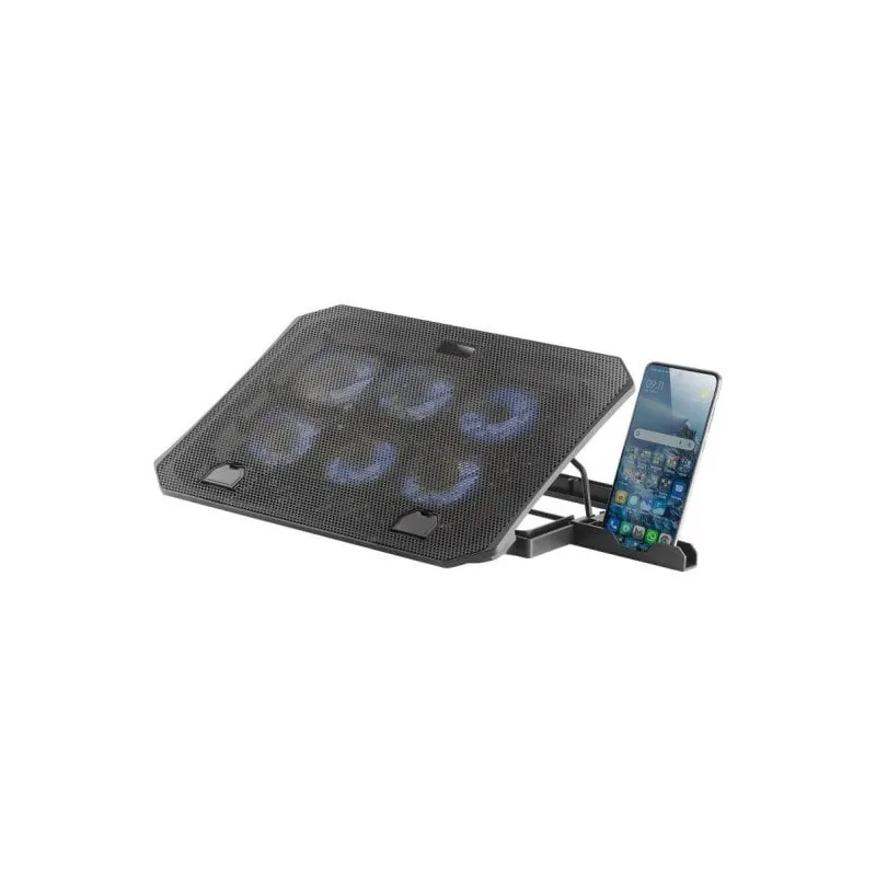 BASE DE REFRIGERACIÓN Y STAND MNBC23: Mantén tu portátil fresco y protegido con la base de refrigeración MNBC23. Diseñada con una estructura de acero resistente, rejilla de aluminio y carcasa de ABS, con función stand 6 posiciones regulables y smartphone holder, proporciona un soporte perfecto para portátiles de hasta 16". Sus 6 ventiladores con iluminación LED azul aseguran una refrigeración potente y eficiente, permitiéndote disfrutar de tus sesiones de juego o trabajo intenso sin preocuparte por el sobrecalentamiento.
