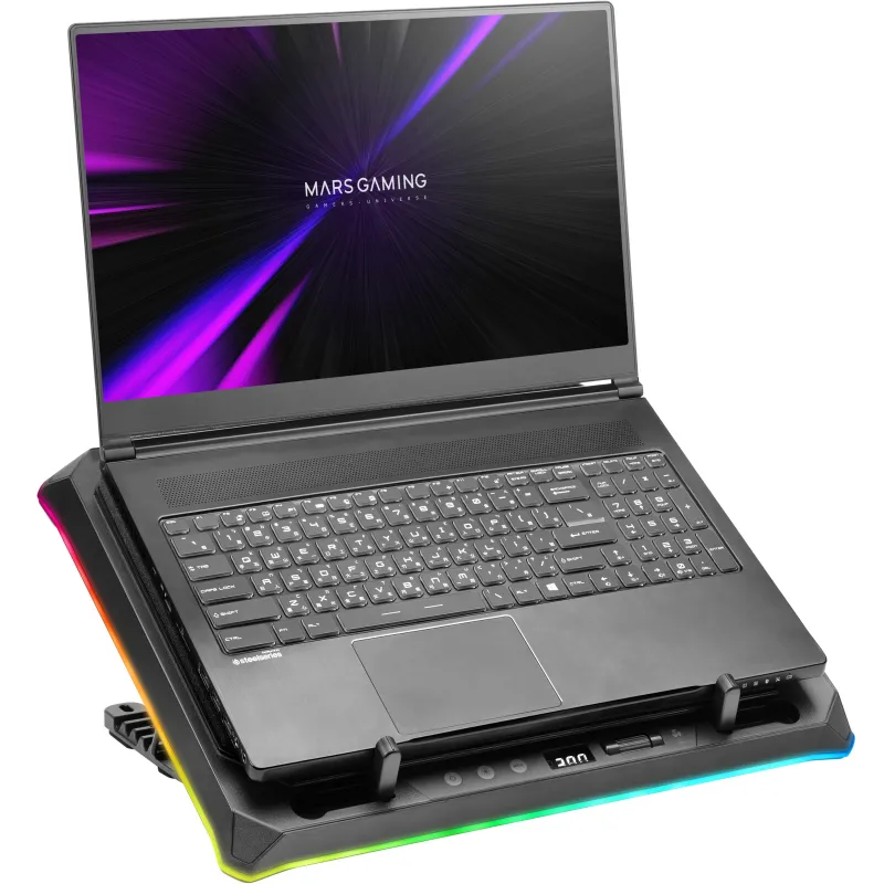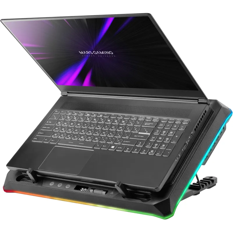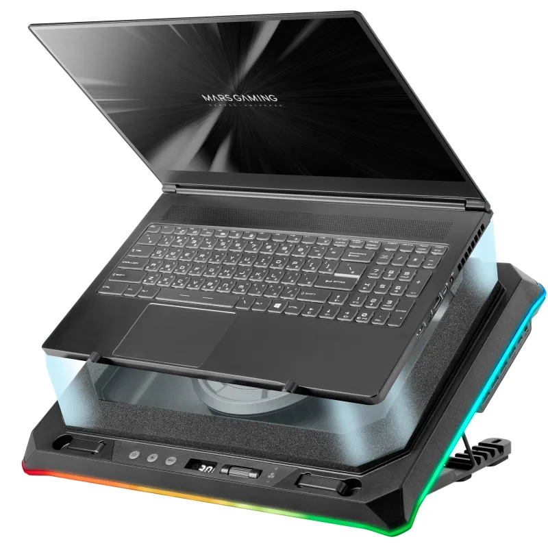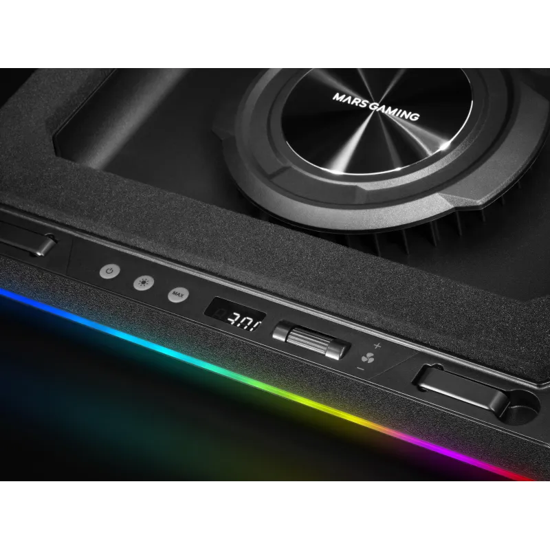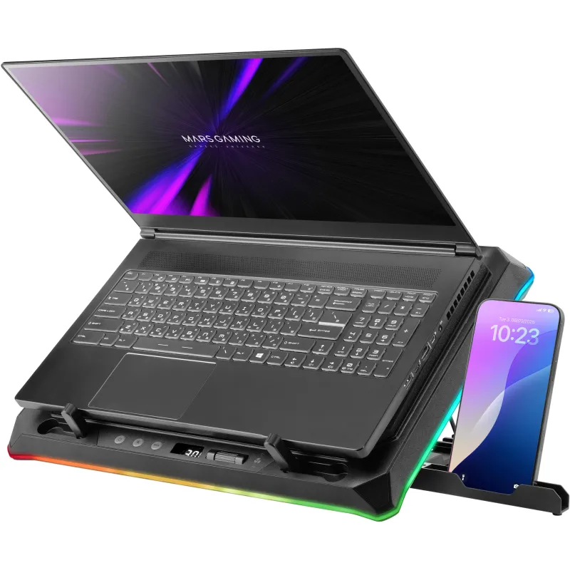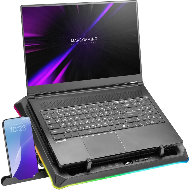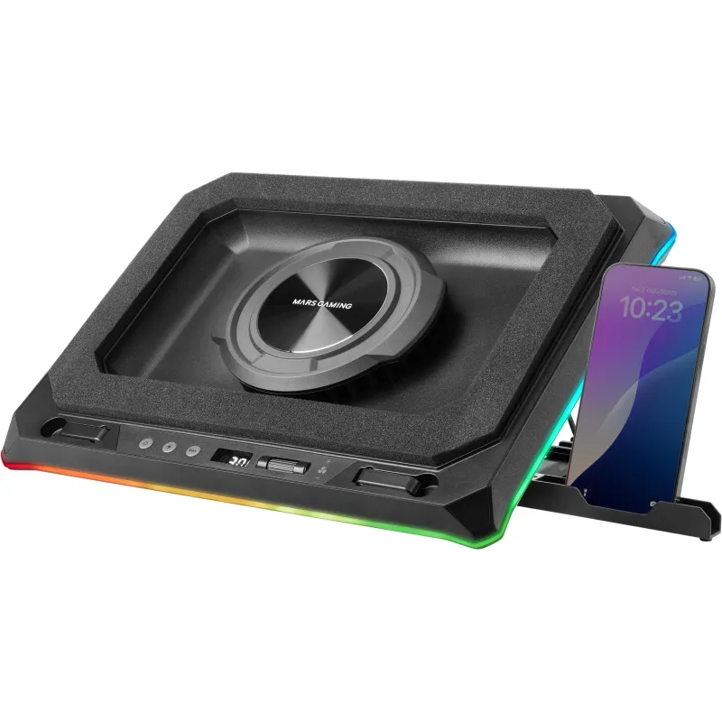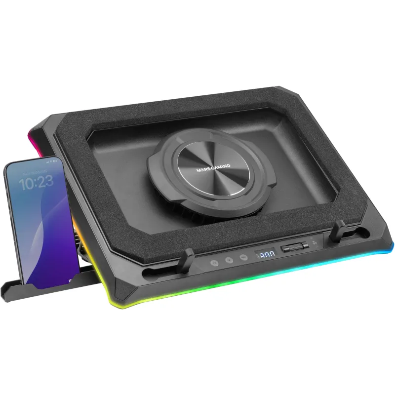 Base de Refrigeración Mars Gaming MNBCULTRA con ventilador 2400 RPM, soporte para smartphone y pantalla incorporada, ajustable