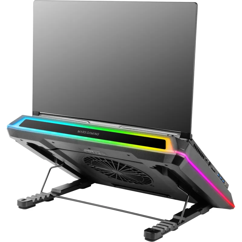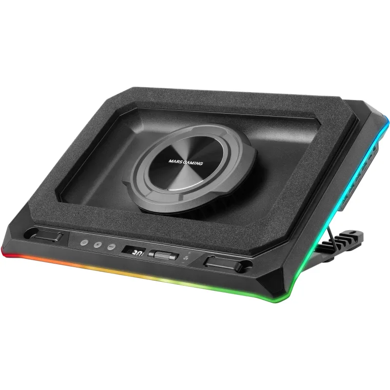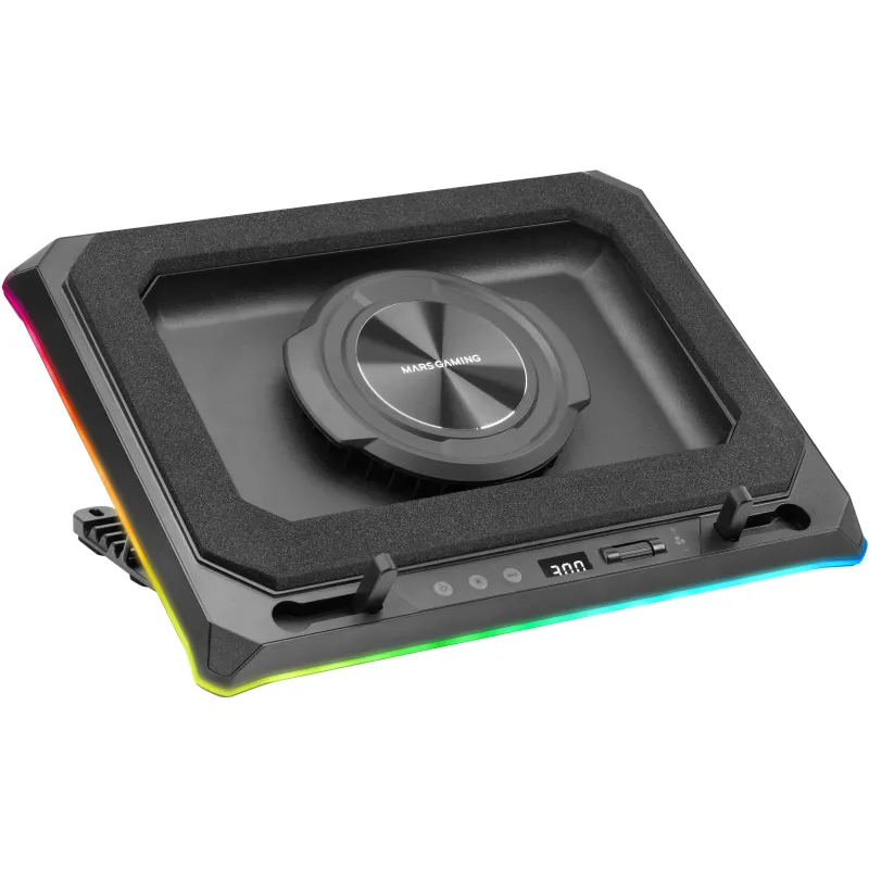Base de Refrigeración Mars Gaming MNBCULTRA con ventilador 2400 RPM, soporte para smartphone y pantalla incorporada, ajustable en 5 alturas