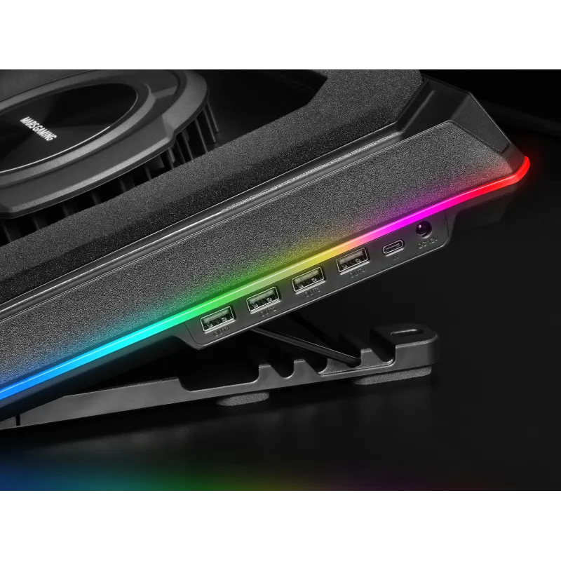 Uno de los puntos fuertes de la Base de Refrigeración Mars Gaming MNBCULTRA es su capacidad de expansión. Dispone de cinco puertos USB, incluyendo cuatro USB 2.0 tipo A y un USB tipo C 3.2 Gen 1. Esta conectividad adicional permite conectar múltiples dispositivos como ratones, teclados, discos duros externos o memorias USB sin necesidad de hubs externos. Todo esto es posible gracias a su alimentación por USB, lo que simplifica su instalación y uso. Además, su pantalla incorporada permite visualizar la configuración activa, y el interruptor de encendido/apagado mejora la eficiencia energética al permitir apagar la base cuando no se necesita. Esta combinación de refrigeración y conectividad convierte al dispositivo en una solución integral para usuarios exigentes.
