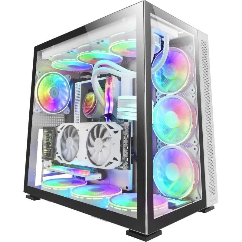 Descubre la elegancia y funcionalidad del gabinete para PC de torre en vidrio templado y color blanco, diseñado especialmente para los entusiastas del juego. Este gabinete soporta una amplia variedad de configuraciones de tarjeta madre, incluyendo ATX, micro ATX y Mini-ITX, ofreciendo flexibilidad para cualquier proyecto de construcción. Con 2 puertos de 3.5 y 4 bahías de 2.5", tendrás espacio suficiente para tus unidades de almacenamiento, mientras que las 7 ranuras de expansión aseguran que puedas añadir múltiples tarjetas de expansión según tus necesidades.