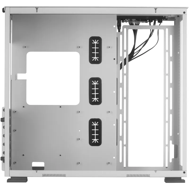Aunque la fuente de alimentación no está incluida, el gabinete cuenta con una excelente capacidad de enfriamiento, soportando hasta 3 ventiladores laterales, 3 superiores y 3 inferiores con diámetros de 120 y 140 mm. Además, es totalmente compatible con enfriamiento líquido, con tamaños de radiador compatibles de hasta 360 mm en la parte superior y 280 mm en los laterales.