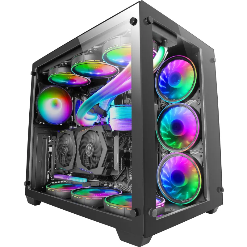 Con un elegante diseño en torre, este PC en color negro es el aliado perfecto para los amantes del juego. Su compatibilidad con múltiples formas de factor de tarjeta madre, incluyendo ATX, EATX, micro ATX y Mini-ITX, ofrece una flexibilidad inigualable para personalizar tu experiencia. Disfruta de una vista impresionante del interior con su ventana lateral de vidrio templado, mientras el filtro anti-polvo asegura que cada componente se mantenga limpio y eficiente.