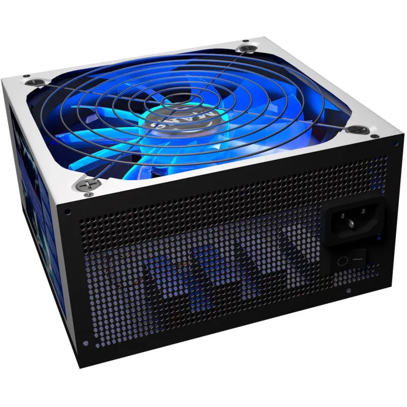 El diseño elegante en negro y plata incluye un sistema de enfriamiento activo con un ventilador de 14 cm ubicado en la parte superior, que asegura una disipación de calor efectiva. Además, el interruptor de encendido/apagado integrado proporciona un control conveniente sobre la alimentación del sistema.