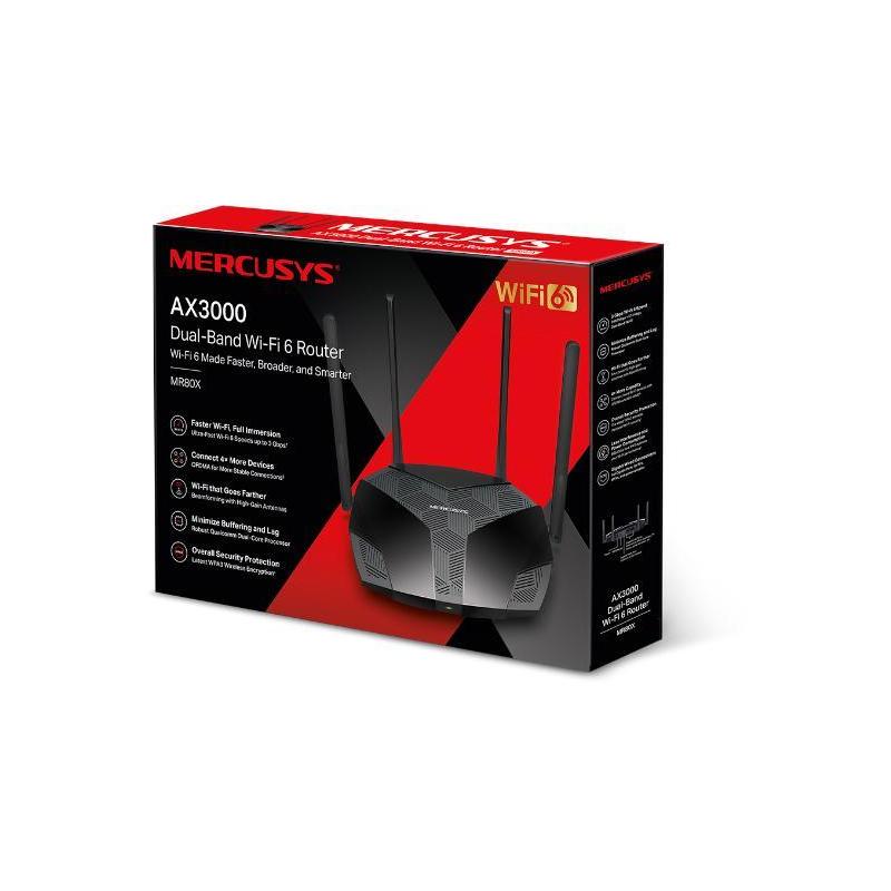 Mercusys MR80X Router WiFi 6 AX3000 Doble Banda MU-MIMO/OFDMA/WPA3
