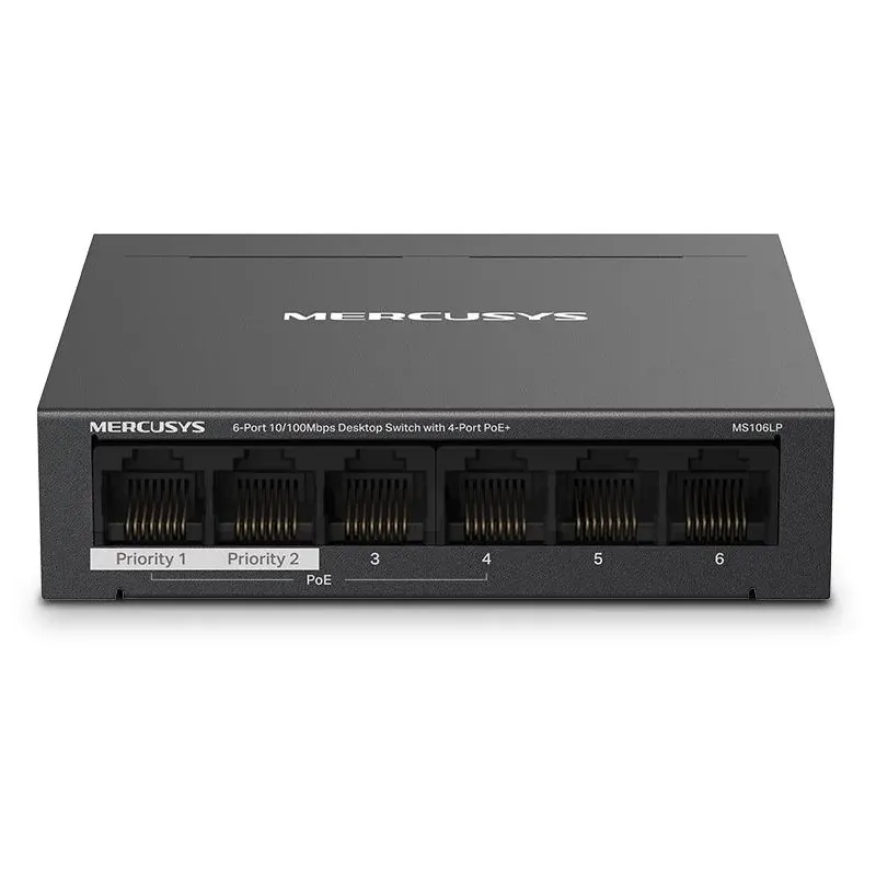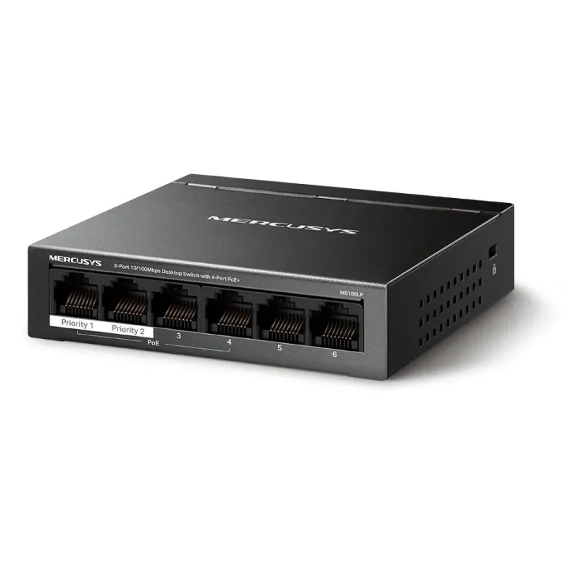 Switch Mercusys MS106LP con alimentación PoE 40W gestión web y en la nube 6 puertos Fast Ethernet RJ-45 soporte IEEE 802.3af