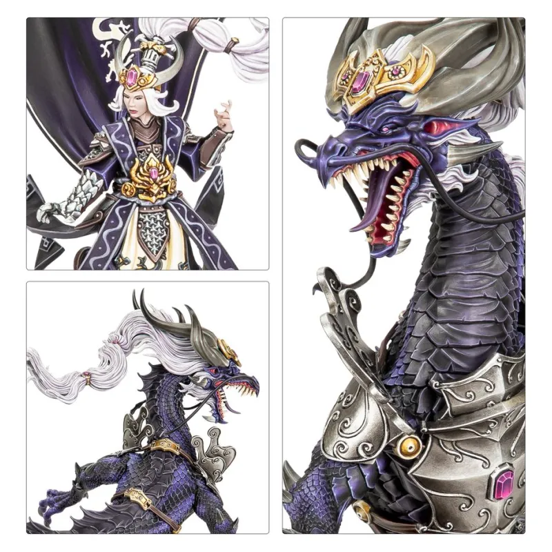 Miao Ying the Storm Dragon se alza como la imponente comandante del Gran Bastión, la muralla que protege a Grand Cathay de las incursiones del Caos. Su papel estratégico en el universo de Warhammer: The Old World es crucial, ya que su liderazgo ha mantenido la estabilidad del norte durante siglos. La miniatura refleja fielmente su papel como guardiana, incorporando tanto su forma humana como su forma de dragón. Esta versatilidad no solo aporta valor estético, sino también funcionalidad en el campo de batalla. Con su presencia, los ejércitos de Grand Cathay ganan una ventaja táctica significativa frente a sus enemigos. El kit es ideal para quienes buscan expandir su colección con una figura que represente tanto poder como historia dentro del universo de Warhammer.