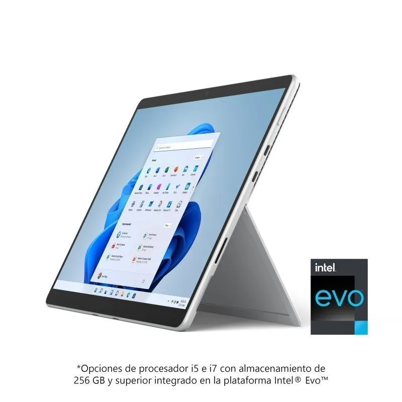 PLATAFORMA INTEL® EVO™: Hazlo todo con el primer dispositivo Surface Pro que incluye la plataforma Intel® Evo™ en configuraciones selectas,†† diseñado para ofrecer un rendimiento móvil con procesadores Intel® Core™ de 11.ª generación, gráficos increíbles y una batería que dura todo el día¹ en un PC fino y ligero.