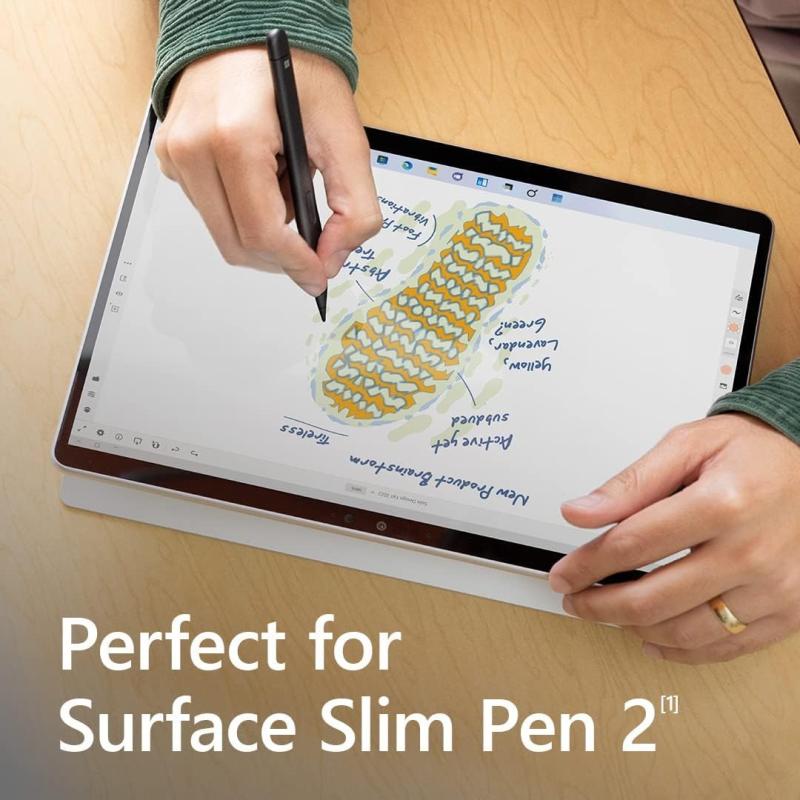 SENSACIÓN DE UN BOLÍGRAFO EN PAPEL: Surface Slim Pen 2 proporciona una receptividad natural para apuntar notas y se guarda de forma segura y se carga de forma inalámbrica en el teclado.