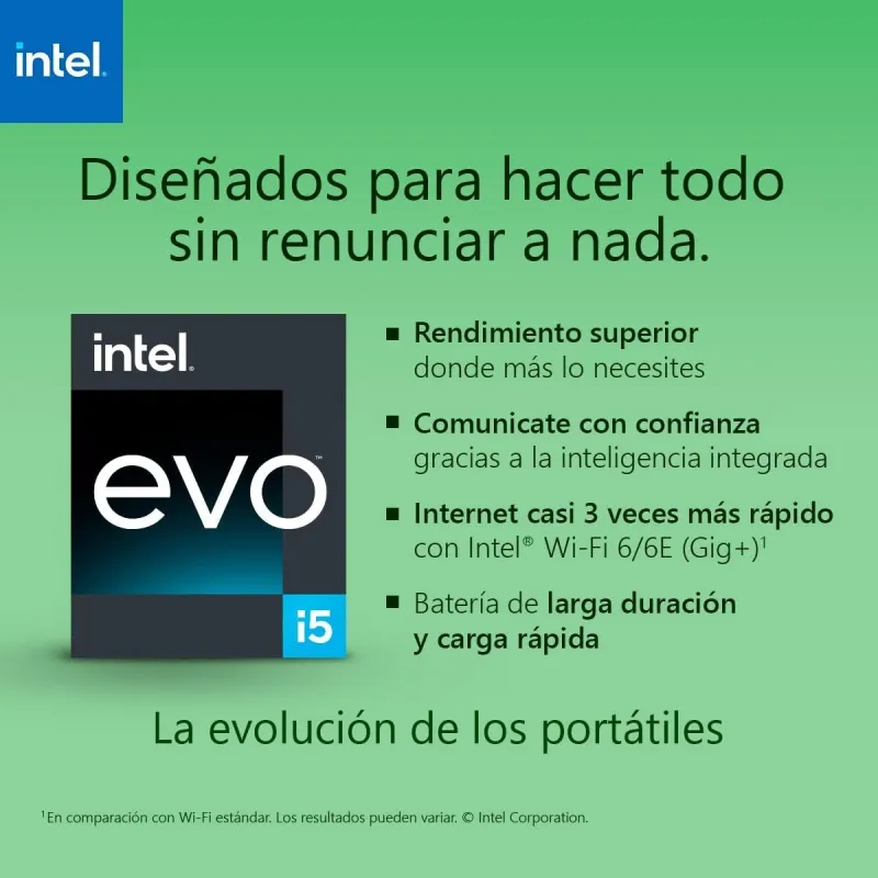 - Opciones con 256 GB o más de almacenamiento basadas en la plataforma Intel® Evo™