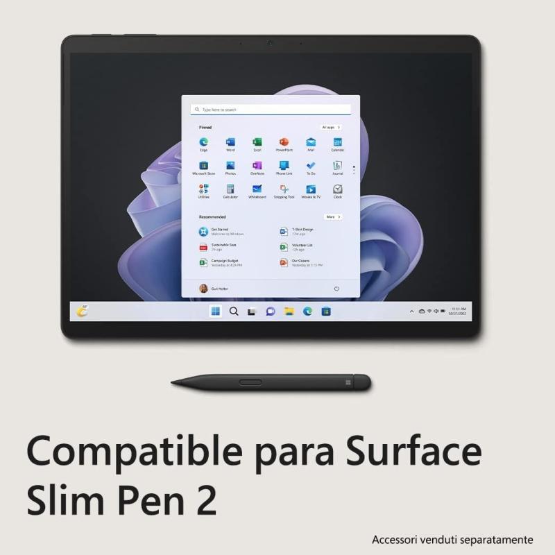 PANTALLA QUE TE DEJARÁ SIN PALABRAS: Si eres de los que les gusta verlo todo con el máximo detalle, te encantará la pantalla táctil PixelSense™ de 13 pulgadas que va casi de un borde al otro. Con una resolución de 2880 x 1920 píxeles, podrás disfrutar de unos colores vibrantes, unos contrastes nítidos y unos ángulos de visión amplios. Además, podrás ajustar el soporte trasero integrado para encontrar el ángulo perfecto para cada situación. Ya sea para trabajar con el teclado, dibujar con el lápiz óptico o ver una película en modo tableta, la pantalla se adaptará a tus necesidades y preferencias.