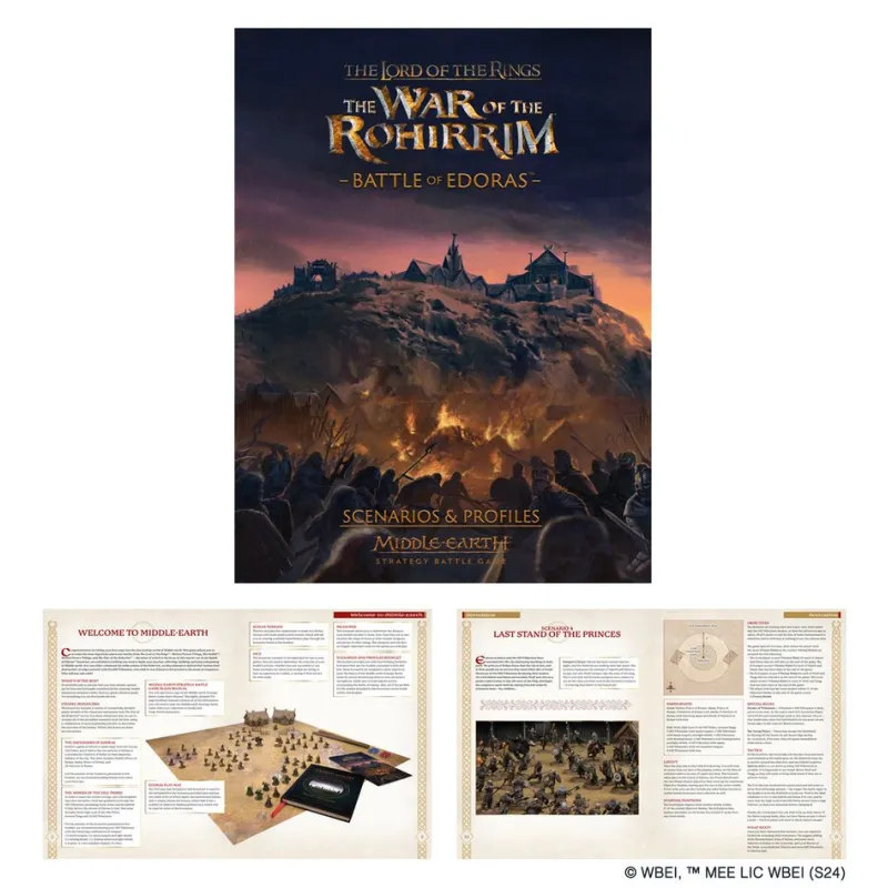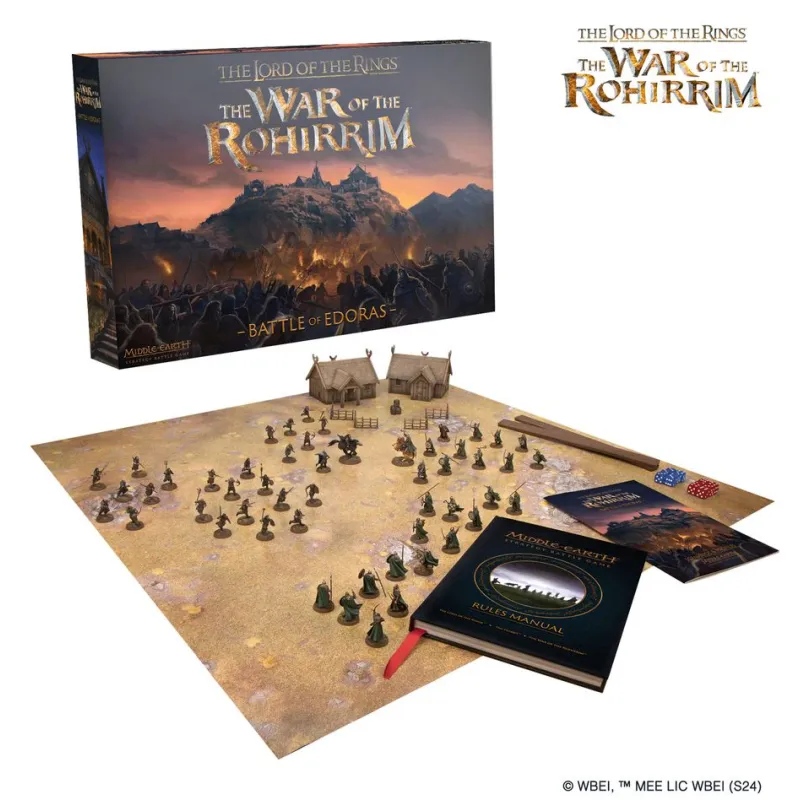 Incluye una selección de miniaturas inspiradas en la película animada “War of the Rohirrim” y piezas de terreno temáticas de Edoras, pensadas para montar una mesa cinematográfica sin tener que construir toda la escenografía desde cero.