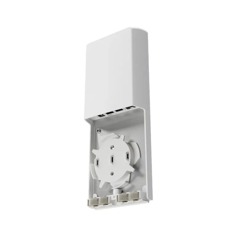 El dispositivo cuenta con un puerto Ethernet 1G/2,5G/5G/10G y dos entradas CC, incluyendo toma CC y entrada PoE, lo que lo hace extremadamente versátil. La funcionalidad PoE es avanzada con 802,3 bits y un rango de voltaje de entrada de 43-57V. Un puerto SFP+ añade aún más posibilidades de conectividad.