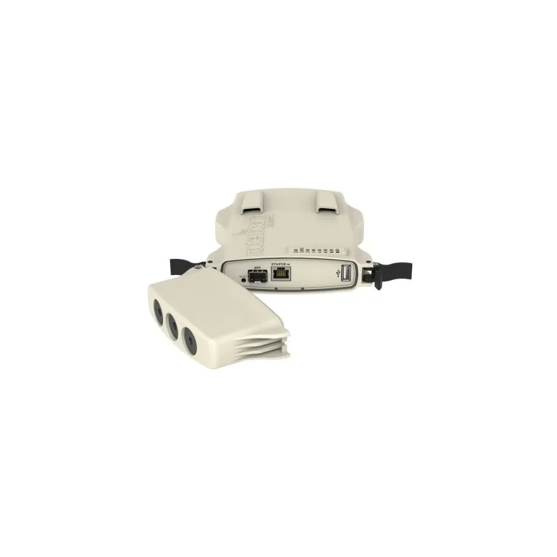 Esta versión NetMetal está equipada con una ranura miniPCI-express, una ranura SIM para dispositivo 3G/4G o tarjeta inalámbrica adicional, una conexión inalámbrica 802.11ac de doble cadena 2x2 de alta potencia y dos conectores RP-SMA para antenas externas.