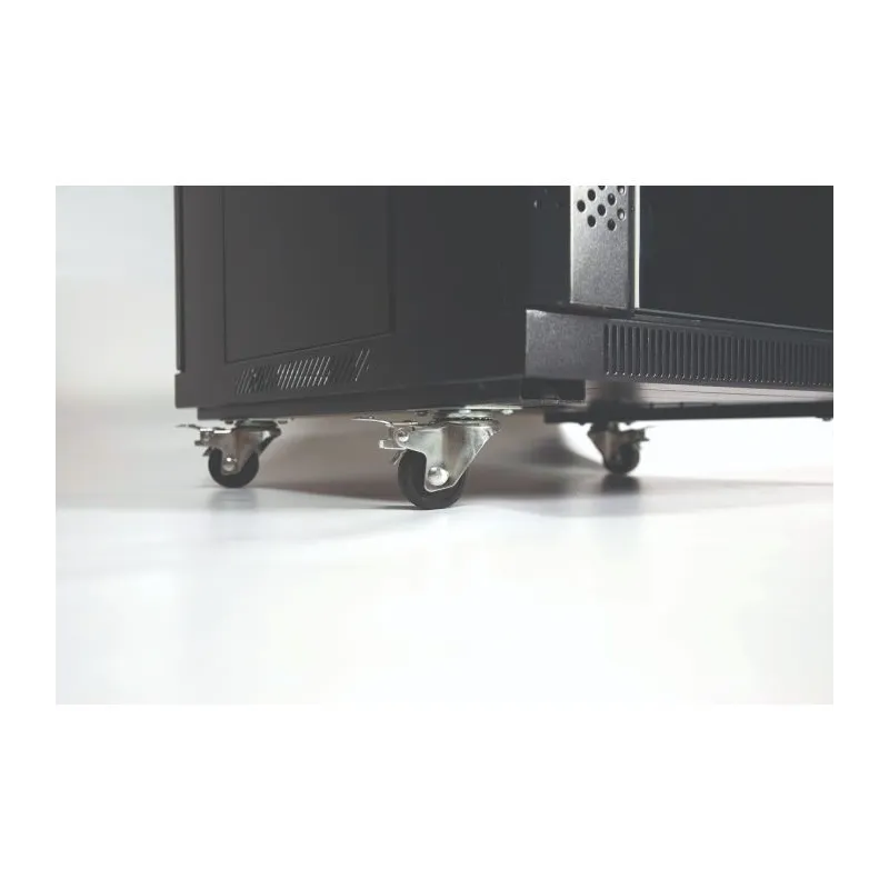 DISEÑADO PARA ADAPTARSE A TUS NECESIDADES: El armario rack de Monolyth cuenta con una puerta delantera perforada que facilita la ventilación y la refrigeración de los equipos, además de ofrecer una apertura de seguridad con llave. También dispone de entradas de cables troqueladas en el techo y el suelo, rieles de rack ajustables en profundidad, patas niveladoras y ruedas giratorias con freno. Todo ello con un diseño elegante y robusto, en color negro y con un grado de protección IP20.