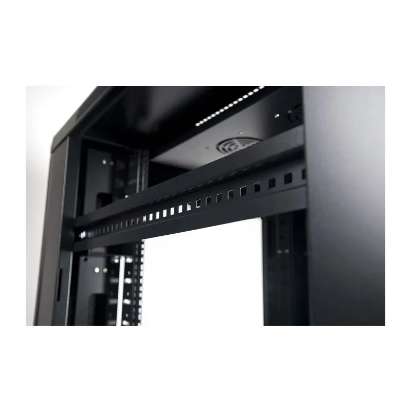 COMODIDAD PARA LA INSTALACIÓN Y UNA BUENA VENTILACIÓN: Tiene un ancho de perfil estándar de 19", lo que lo hace compatible con la mayoría de los equipos del mercado. Además, tiene una profundidad de 1000 mm, lo que te permite instalar equipos más grandes o dejar más espacio para el cableado. El armario incluye dos bandejas fijas y cuatro ventiladores en el techo, que garantizan una óptima circulación del aire y evitan el sobrecalentamiento de los equipos. También dispone de entradas de cableado por el panel trasero y la base inferior, para facilitar la instalación y el orden.