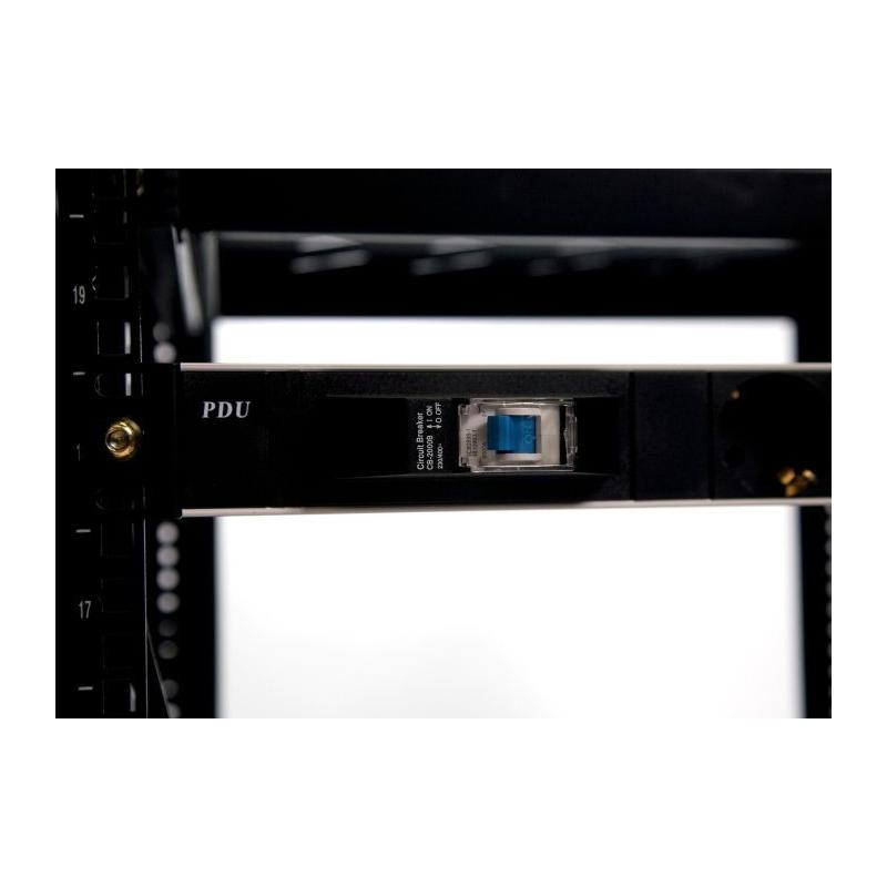 ARMARIO ELEGANTE Y FUNCIONAL: Tiene un diseño elegante y moderno, con un color negro RAL 9004 liso que se adapta a cualquier entorno. El armario tiene paneles laterales desmontables, que permiten un fácil acceso y mantenimiento de los equipos. También tiene rieles de montaje ajustables, que se pueden adaptar a las diferentes necesidades de cada instalación. El armario cumple con las normativas medioambientales CE y RoHS, y con los estándares ANSI/EIA, RS-310-D, DIN41491 PART1, DIN41491 PART7 y ETSI.