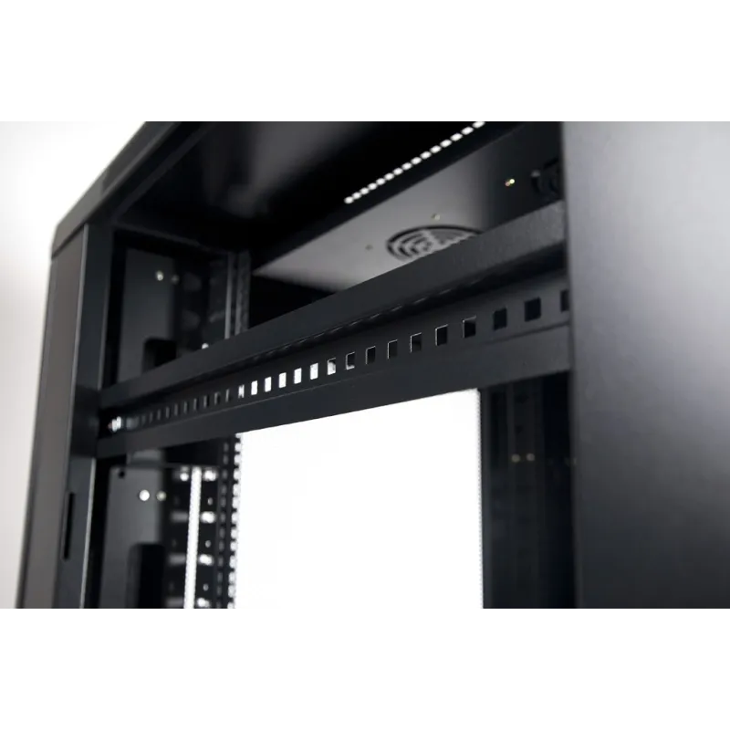 UN ARMARIO FÁCIL DE INSTALAR Y CONFIGURAR: Diseñado para facilitar al máximo su instalación y configuración. Su profundidad es ajustable entre 600 y 1000 mm, lo que te permite adaptarlo a las necesidades de cada equipo. Sus paneles laterales son desmontables e incluyen cerradura, lo que facilita el acceso y el mantenimiento. Su puerta delantera y trasera es reversible, lo que te permite elegir el sentido de apertura más conveniente. Además, incluye cuatro ventiladores de 12 cm en el techo y un kit de ruedas y pies regulables en altura.
