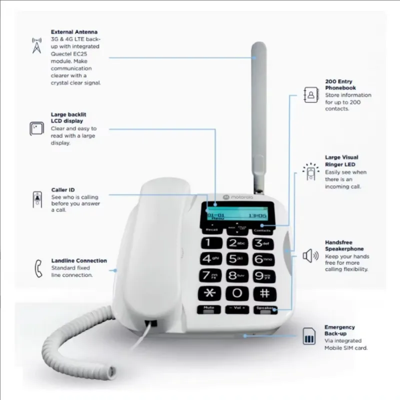 Descubre la innovación con nuestro nuevo dispositivo que redefine la comunicación. Equipado con un identificador de llamadas avanzado, siempre sabrás quién te está contactando. En situaciones críticas, el Back-Up de emergencia asegura que nunca te quedes incomunicado. Disfruta de la comodidad del modo manos libres, permitiéndote realizar múltiples tareas sin interrumpir tus conversaciones.