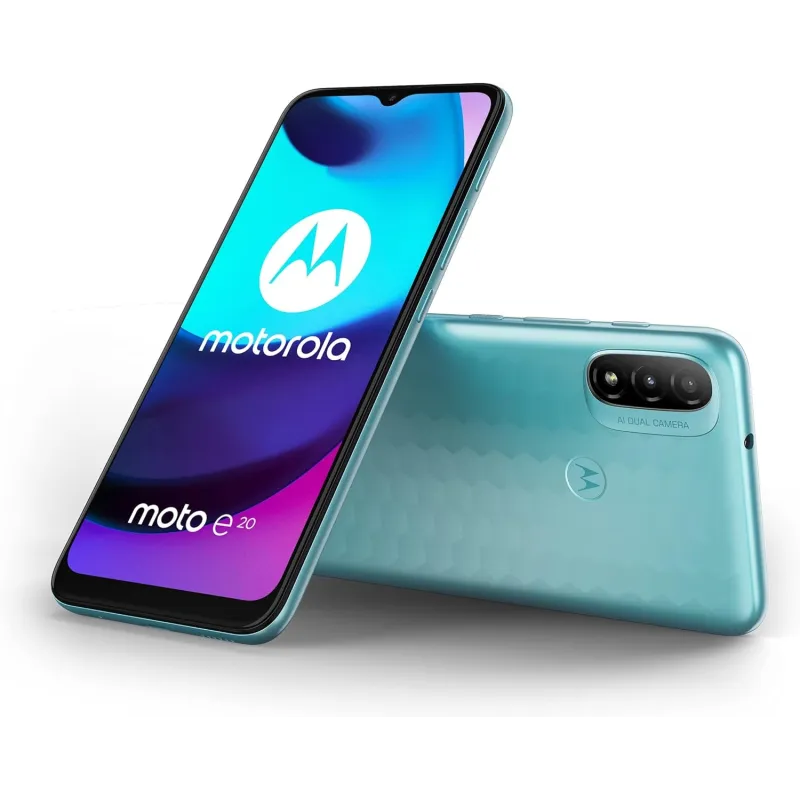 Conoce el moto e20. Una pantalla Max Vision HD+ de 6,5” que dará vida a tu contenido favorito. Realiza fácilmente varias tareas a la vez y cambia entre aplicaciones con un procesador de ocho núcleos. Haz fotos como un profesional y no te pierdas ningún momento con un sistema de doble cámara con IA de enfoque rápido