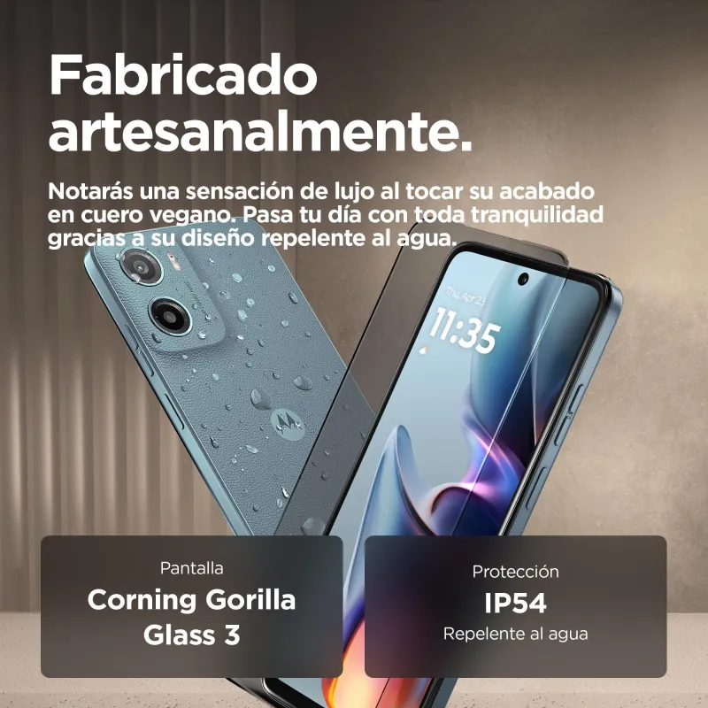 INMORTALIZA TUS MEJORES MOMENTOS: Disfruta de visualizaciones y sonidos impresionantes con el nuevo moto g05. Ve tus programas y películas favoritos en una pantalla superbrillante de 6,67", incluso a plena luz del día. Déjate envolver por el sonido de unos altavoces estéreo potentes con refuerzo de graves. Haz fotos maravillosamente definidas, de día o de noche, con el sistema de cámaras Quad Pixel de 50 MP(2), que integra un modo Retrato con inteligencia artificial. Ve más rápido con un rendimiento ultraeficiente y hasta 12 GB de RAM disponibles con la función Expansión de memoria(5). Gracias a su diseño con un acabado en cuero vegano, resistente a salpicaduras y derrames de agua(4), y con cristal Corning® Gorilla® Glass 3, moto g05, marcarás estilo durante años. Confía en una batería de 5200 mAh de larga duración y la carga TurboPower™, y guarda todo tu contenido y tus creaciones sin problema gracias a su amplio espacio de almacenamiento. El moto g05 impresiona a todos los niveles.
