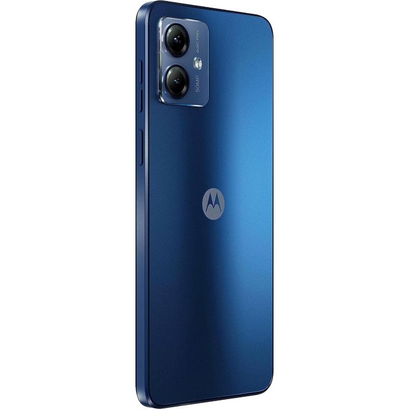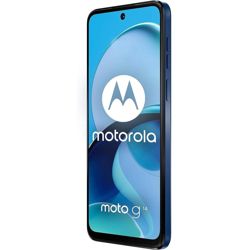 ELEGANCIA ACUÁTICA: El moto g14, que se ha fabricado con materiales de primera calidad para destacar, también está disponible en una edición especial de cuero vegano que resulta suave al tacto y es resistente a las huellas digitales. Además, su marco repelente al agua2 lo protege de salpicaduras y derrames de agua.