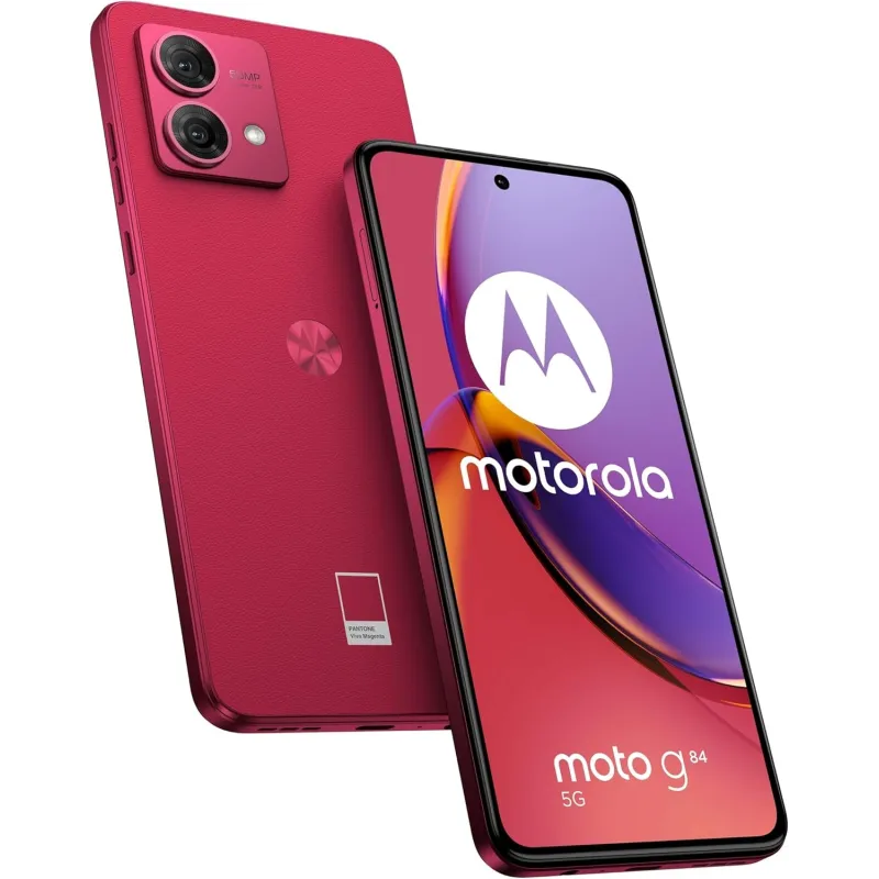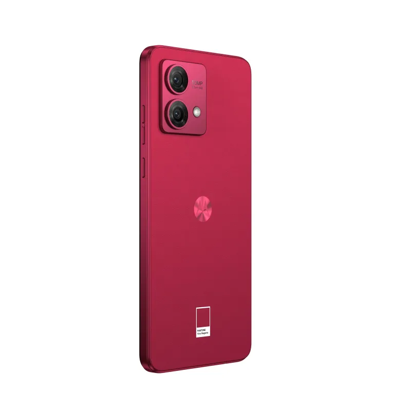 UN ESTILO QUE TE DEJARÁ SIN PALABRAS: Vístete de gala y elije entre varios colores espectaculares: gris, azul claro y Viva Magenta, el color PANTONE™ del año 20231. El moto g84 5G se fabrica con un cuero vegano especial que le da suavidad y comodidad a su aspecto único en las versiones azul claro y Viva Magenta (PANTONE™).