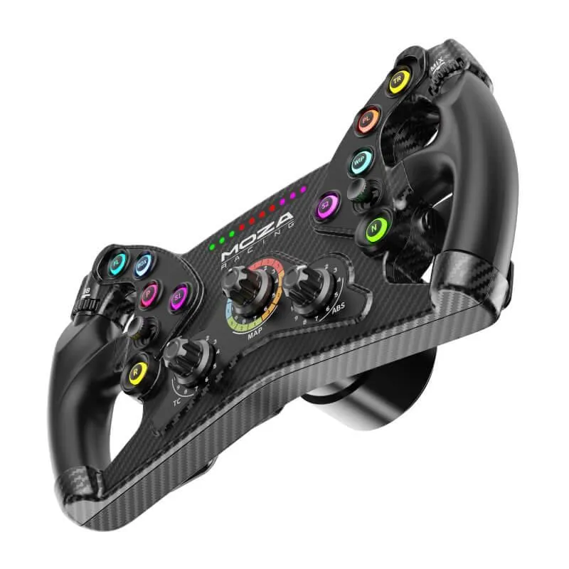 La retroiluminación LED multicolor del Volante Moza KS Steering Wheel no solo mejora la estética del dispositivo, sino que también añade funcionalidad al permitir una mejor visibilidad de los controles en entornos con poca luz. Con 8 colores LED disponibles, el usuario puede personalizar la iluminación según sus preferencias o necesidades del juego. Esta característica, junto con los indicadores LED, convierte al Volante Moza Racing RS047 en una herramienta visualmente impactante y altamente funcional, elevando la inmersión en cada sesión de simulación.