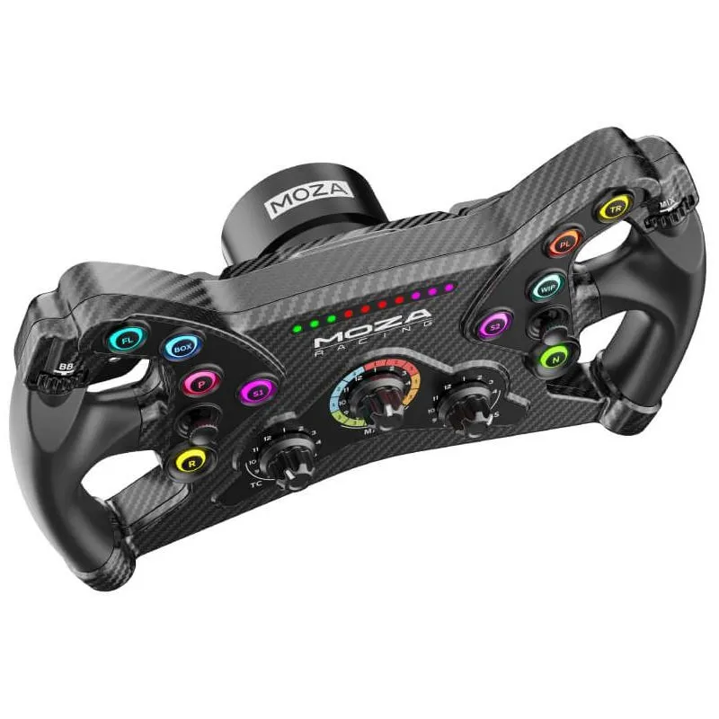 Volante Moza KS Steering Wheel con retroiluminación LED, palancas de cambio magnéticas, carcasa de aluminio y compatibilidad con múltiples simuladores