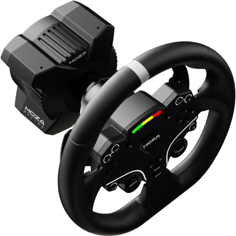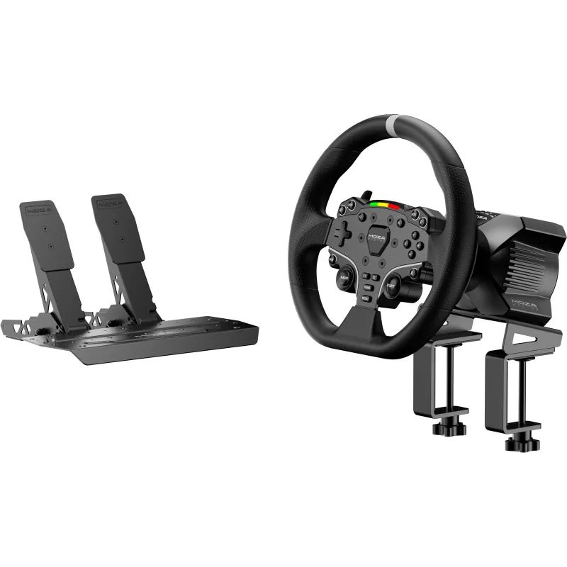 Volante + pedales Moza Racing RS074 con accionamiento directo, ángulo de giro ilimitado y conectividad Bluetooth o USB para PC