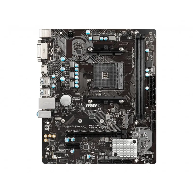 El A320M-A PRO MAX es una placa base de alto rendimiento diseñada para aprovechar al máximo los procesadores AMD, con soporte para el zócalo AM4 y una amplia gama de CPUs, incluyendo las series Ryzen™ 3, 5, 7 y 9. Su capacidad para trabajar con memoria DDR4-SDRAM y soportar velocidades de hasta 3200 MHz la convierten en una opción ideal para usuarios que buscan una experiencia informática rápida y eficiente.