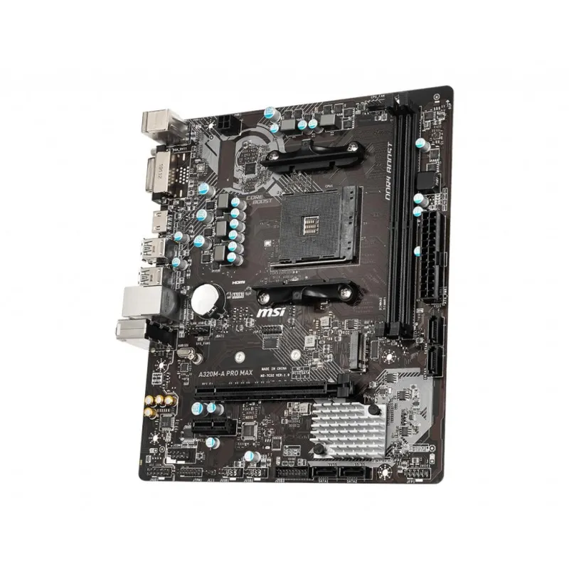 El chipset AMD A320 junto con el chip de sonido Realtek ALC892 proporcionan una salida de audio de 7.1 canales, creando un entorno sonoro rico y envolvente para cualquier tipo de contenido. Su factor de forma micro ATX y el soporte para sistemas operativos Windows 10 y 7 garantizan una compatibilidad amplia y una integración sencilla en cualquier configuración de PC.
