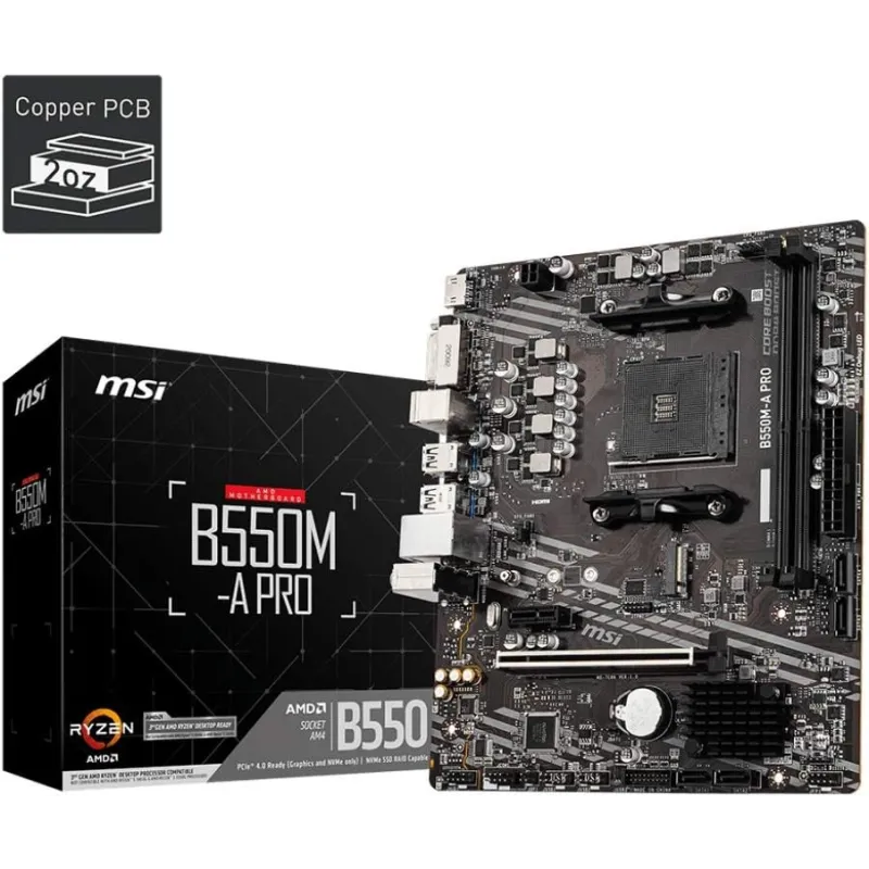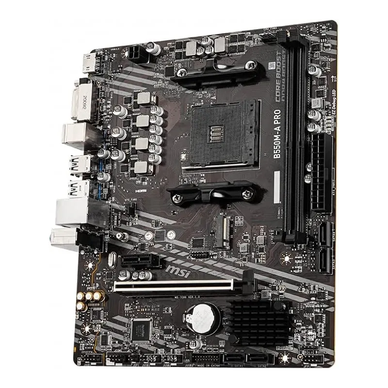 El B550M-A PRO es una placa base de alto rendimiento diseñada para los entusiastas de la tecnología. Con el socket de procesador Zócalo AM4 y compatibilidad con la 3ra Generación de procesadores AMD Ryzen™, esta placa es ideal para construir una PC potente y versátil.