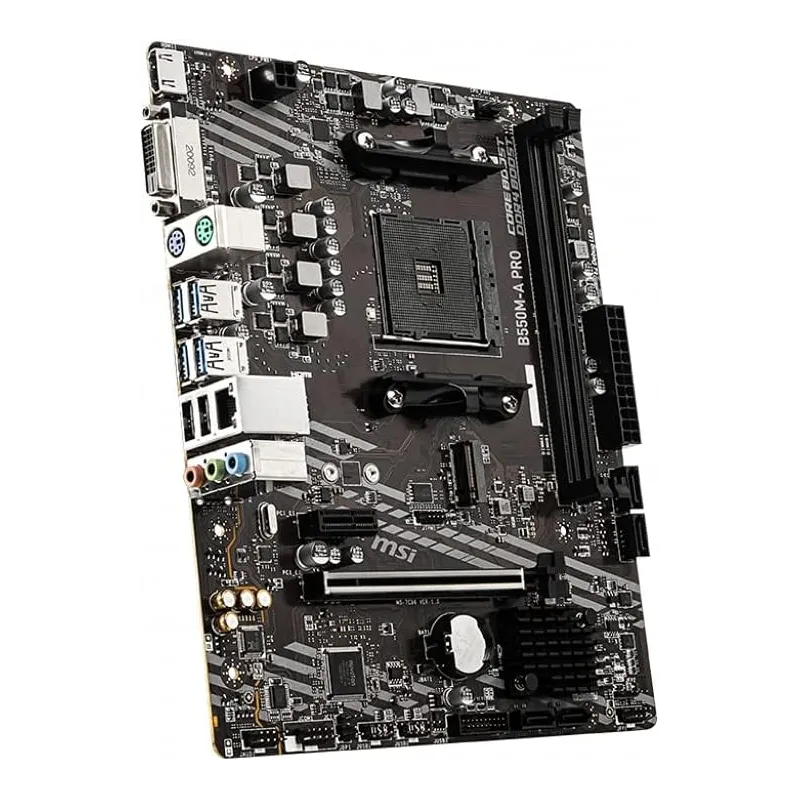 El chipset AMD B550 se complementa con un chip de sonido Realtek ALC892 / ALC897, ofreciendo una experiencia de audio inmersiva con canales de salida de audio 7.1. Su factor de forma micro ATX lo hace adecuado para una amplia gama de cajas de PC, permitiendo a los usuarios crear sistemas compactos pero potentes.