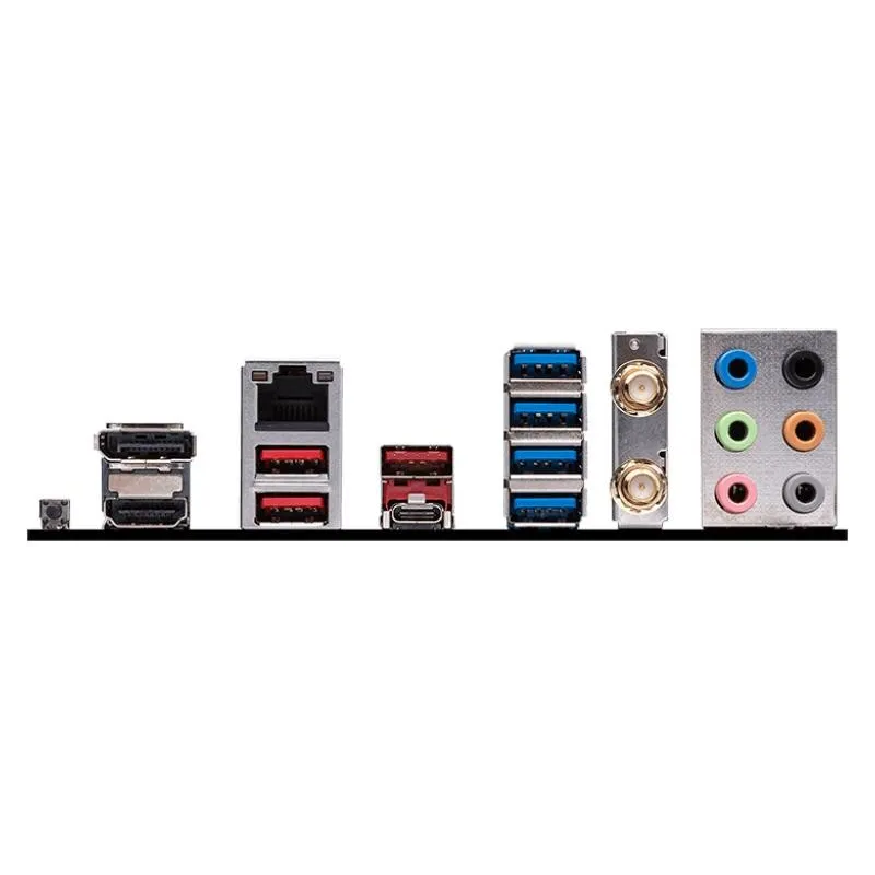 En cuanto a almacenamiento, cuenta con interfaces M.2 y SATA y soporta diversos niveles RAID, lo que garantiza opciones flexibles y seguras para tus datos. A pesar de no ser compatible con procesos paralelos en gráficos, ofrece una amplia gama de conexiones internas y externas, incluyendo USB 3.2 Gen 1 y Gen 2, y un completo panel trasero con puertos I/O.