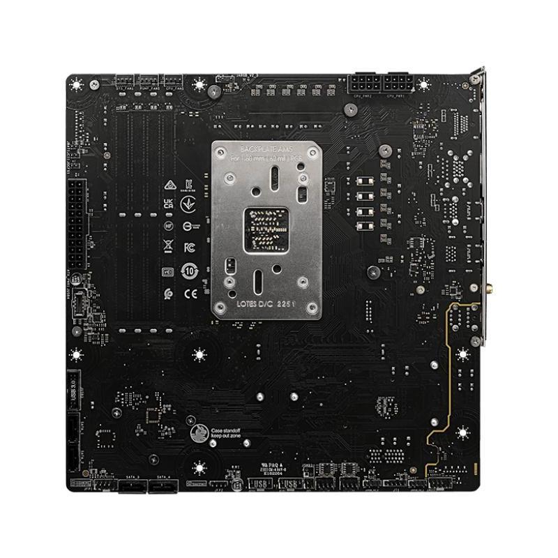 SENCILLEZ ABSOLUTA: B650M PROJECT ZERO mueve los conectores de energía, conectores de ventiladores y otros pines al reverso de la placa base. Esto proporciona una vista frontal más limpia y ordenada, permitiendo que el diseño estético de la placa base, el enfriador líquido y la tarjeta gráfica se muestren completamente.
