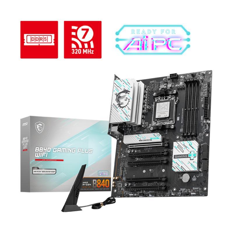 Placa Base MSI B840 Gaming PLUS WiFi rendimiento potente con soporte para Ryzen 7000-9000 DDR5 Wi-Fi 7 PCIe 4.0