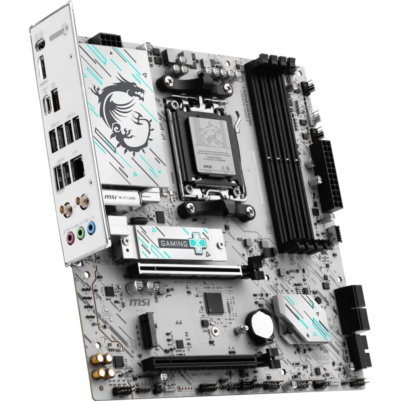 DISEÑO MICRO ATX COMPACTO Y ESTÉTICA EN COLOR BLANCO: La MSI B840M GAMING PLUS WIFI6E combina funcionalidad y estética con su formato micro ATX y elegante diseño en color blanco. Este formato compacto facilita su instalación en cajas más pequeñas sin sacrificar características clave. A pesar de su tamaño reducido, incluye puertos USB 3.2 Gen 1 y Gen 2, HDMI 2.1, Ethernet 2.5 Gb y conectores para ventiladores, bombas de agua y tiras LED RGB. Su diseño está pensado para ofrecer una experiencia visual atractiva y una gestión térmica eficiente. Compatible con Windows 11 x64, esta Placa Base MSI B840M GAMING PLUS WIFI6E es ideal para quienes buscan una solución potente, moderna y visualmente cuidada.