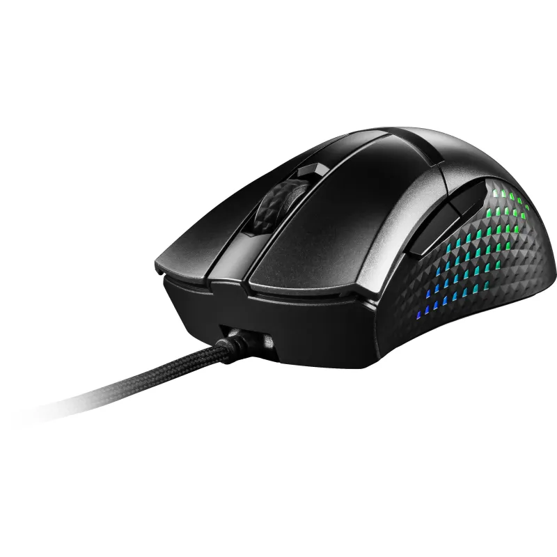 Las características de MSI Diamond Lightgrips incluyen una superficie antideslizante con un exclusivo patrón de diamante de doble inyección que permite a los jugadores sostener el ratón firmemente en la mano, mientras muestra una iluminación RGB única totalmente personalizable a través de MSI Center.