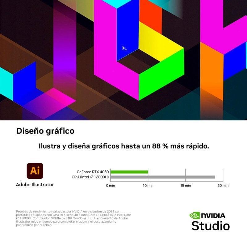 TUS IDEAS, ACELERADAS POR NVIDIA STUDIO: Creatividad total. NVIDIA Studio es tu ventaja creativa con GPUs RTX de última generación que potencian las mejores aplicaciones creativas. El trazado de rayos ofrece gráficos hiperrealistas y el conjunto de herramientas de Studio asistidas por IA llevan las ideas del concepto a la finalización, más rápido. Los Studio Drivers ofrecen la máxima fiabilidad para que puedas centrarte en tu próxima gran idea.