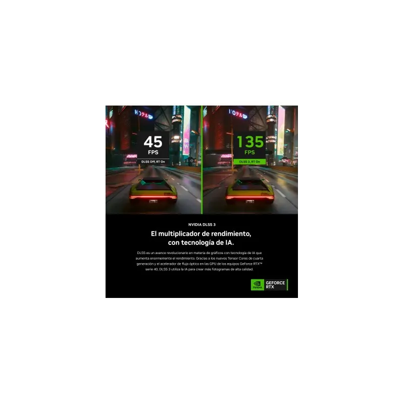 Las GPU para portátiles NVIDIA® GeForce RTX™ Serie 40 alimentan los portátiles más rápidos del mundo para jugadores y creadores. Construidas con la arquitectura ultraeficiente NVIDIA Ada Lovelace, brindan un salto cuántico en rendimiento con DLSS 3 impulsado por IA y permiten mundos virtuales realistas con trazado de rayos completo. Además, el conjunto de tecnologías Max-Q optimiza el rendimiento del sistema, la energía, la vida útil de la batería y la acústica para una eficiencia máxima.