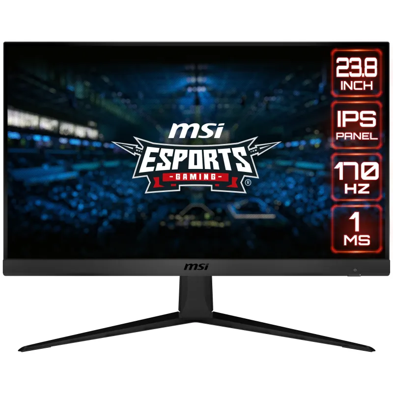 G2312: Visualiza tu victoria con el monitor para juegos MSI G2312 Esports. Equipado con un panel IPS de 1920x1080, 170hz de tasa de refresco y 1ms de tiempo de respuesta, el G2312 te dará la ventaja competitiva que necesitas para acabar con tus oponentes. Fabricado con tecnología AMD FreeSync Premium, el G2312 puede adaptar la tasa de refresco de la pantalla a la GPU para conseguir un juego muy fluido. Asegúrate de que puedes dar en el blanco con todas las últimas tecnologías integradas en los monitores MSI Esports Gaming para el juego competitivo.