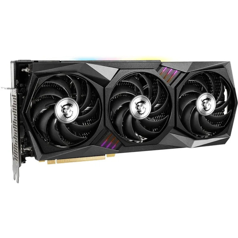 El diseño incluye un sistema de enfriamiento activo con la tecnología MSI TORX Fan 4.0 y tres ventiladores, asegurando un rendimiento óptimo sin sobrecalentamientos. La iluminación integrada añade un toque estético que complementa cualquier configuración de gaming. Requiere un suministro de energía mínimo de 750 W y cuenta con dos conectores de energía suplementarios de 8-pin.