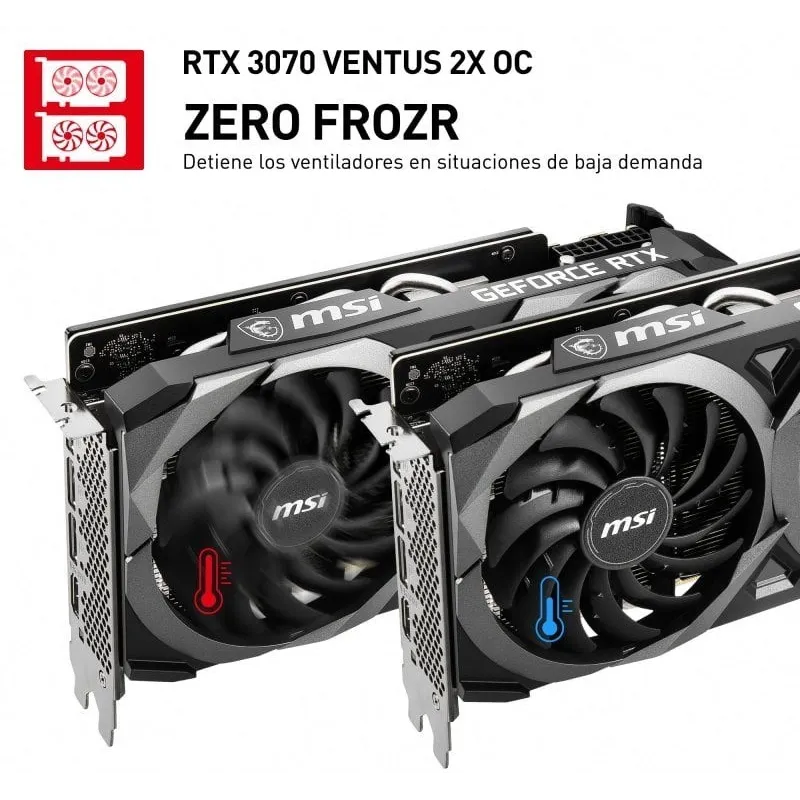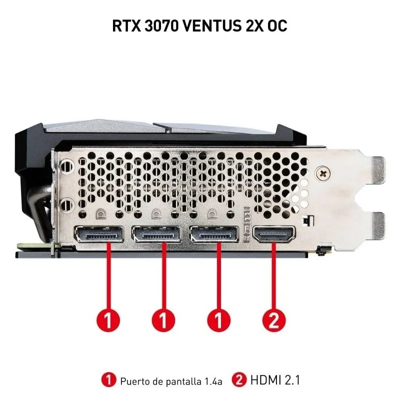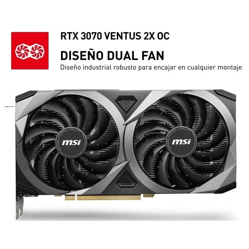 Preparada para la realidad virtual, con soporte para DirectX 12.0 y OpenGL 4.6, la RTX 3070 VENTUS es una solución robusta y futura para los gamers y profesionales creativos. Su eficiencia energética requiere un sistema con un suministro mínimo de 650 W, y su diseño elegante en color gris complementará cualquier configuración de PC.