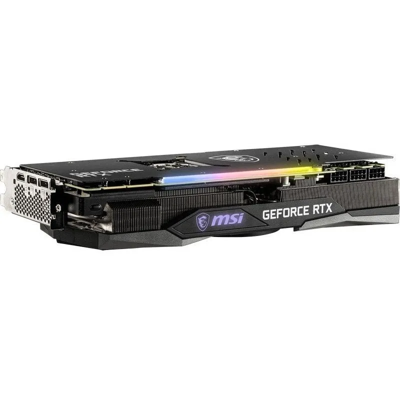 El diseño de la RTX 3090 GAMING X TRIO 24G no se queda atrás, con un sistema de enfriamiento activo MSI Tri Frozr 2 y tres ventiladores que mantienen la tarjeta a una temperatura óptima incluso bajo carga pesada. La iluminación RGB multicolor añade un toque estético que se destaca en cualquier configuración de PC. Requiere un suministro de energía mínimo de 750 W y cuenta con tres conectores de energía suplementarios de 8-pin para garantizar un rendimiento estable.